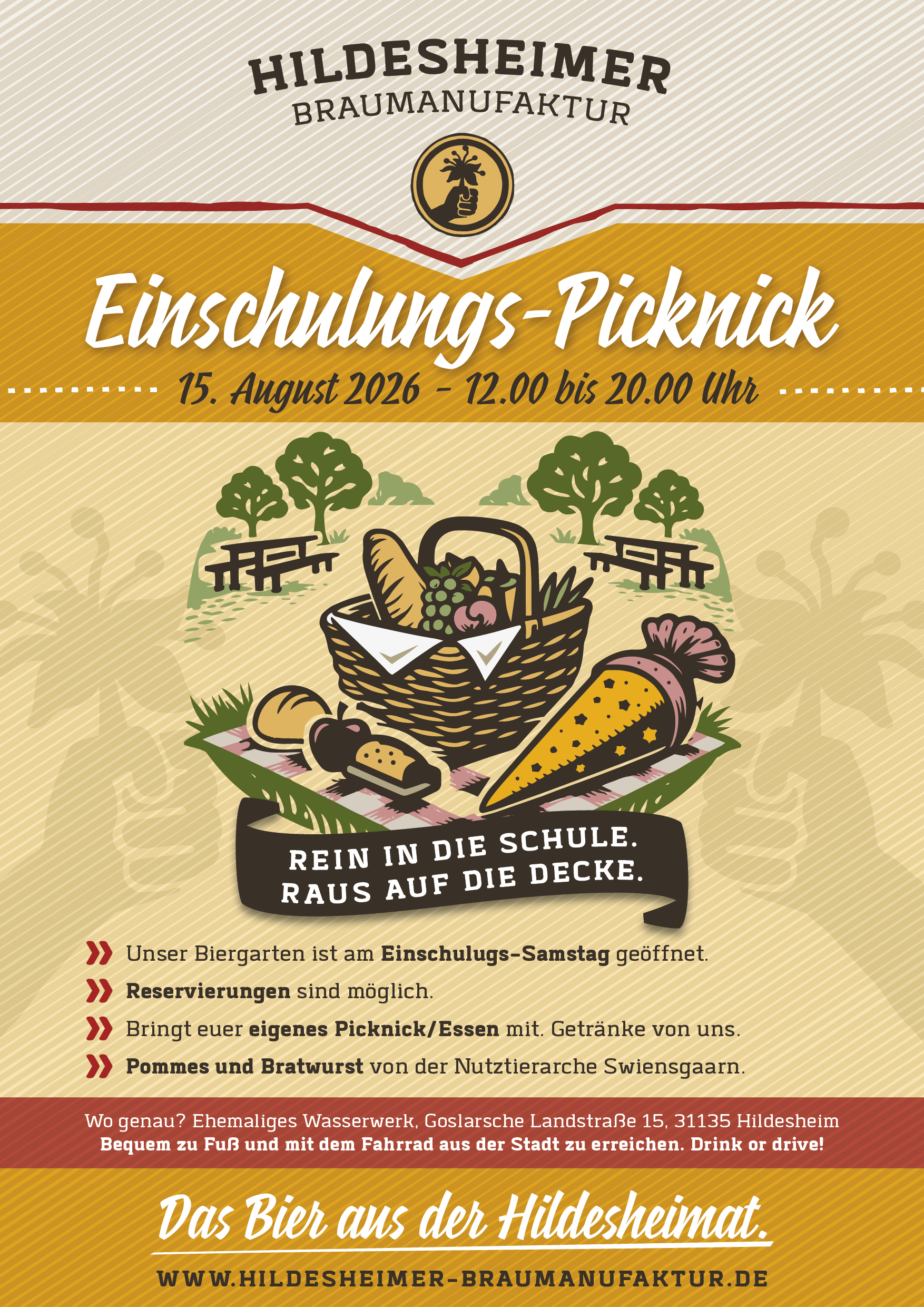 Erlebe unseren wunderschönen Biergarten auf 10.000 m², mit Sitzplätzen, wechselnden Essensangeboten, Spielen und vieles mehr.